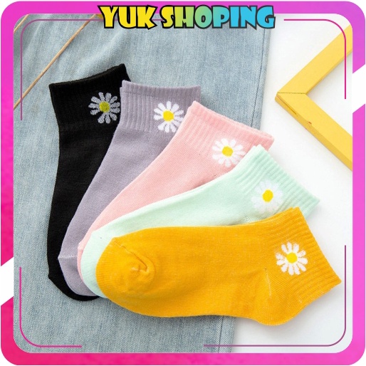 ✧YUKSHOPING✧ Kaos Kaki Ankle H185 Motif Bunga Daisy Gaya Korea Untuk Kaos Kaki Wanita Motif R456