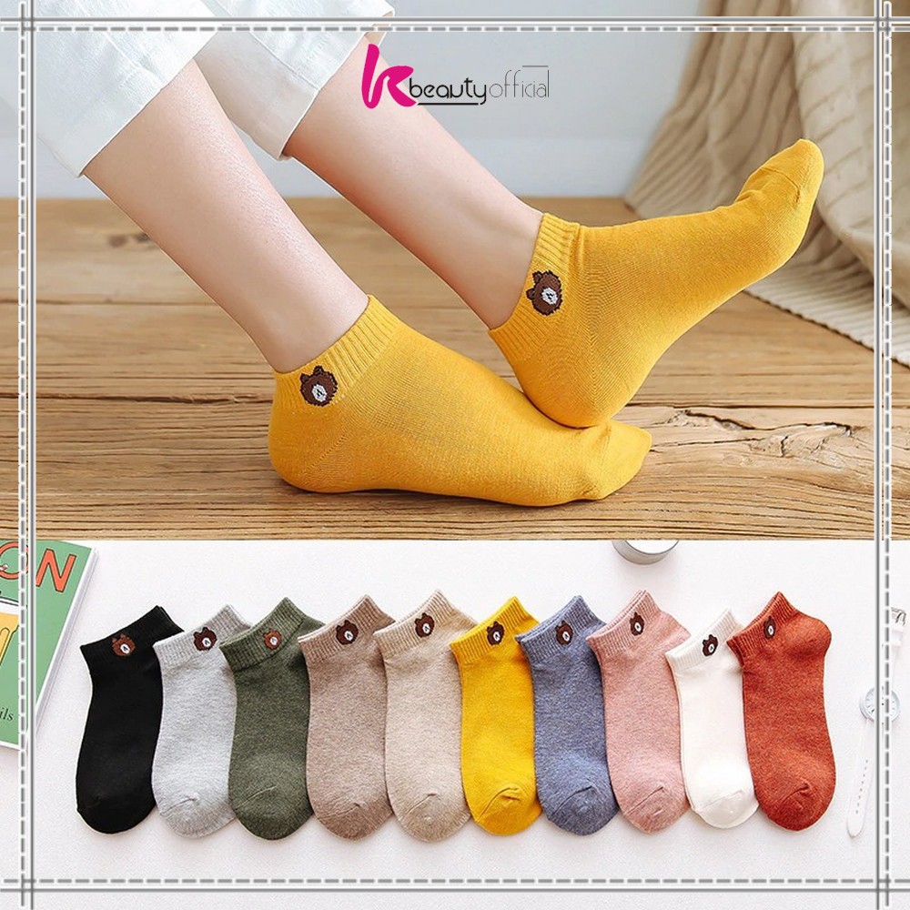 KB-P32-33 Kaos Kaki Dewasa Pendek Kaus Kaki Wanita Pria Motif Brown / Kaos Kaki Ankle Korea Daisy