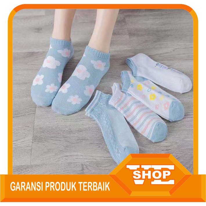 ✌️ Veshop ✌️ A100 Kaos Kaki Wanita Motif Bunga Biru Fashion Korea Women Sock Import Murah