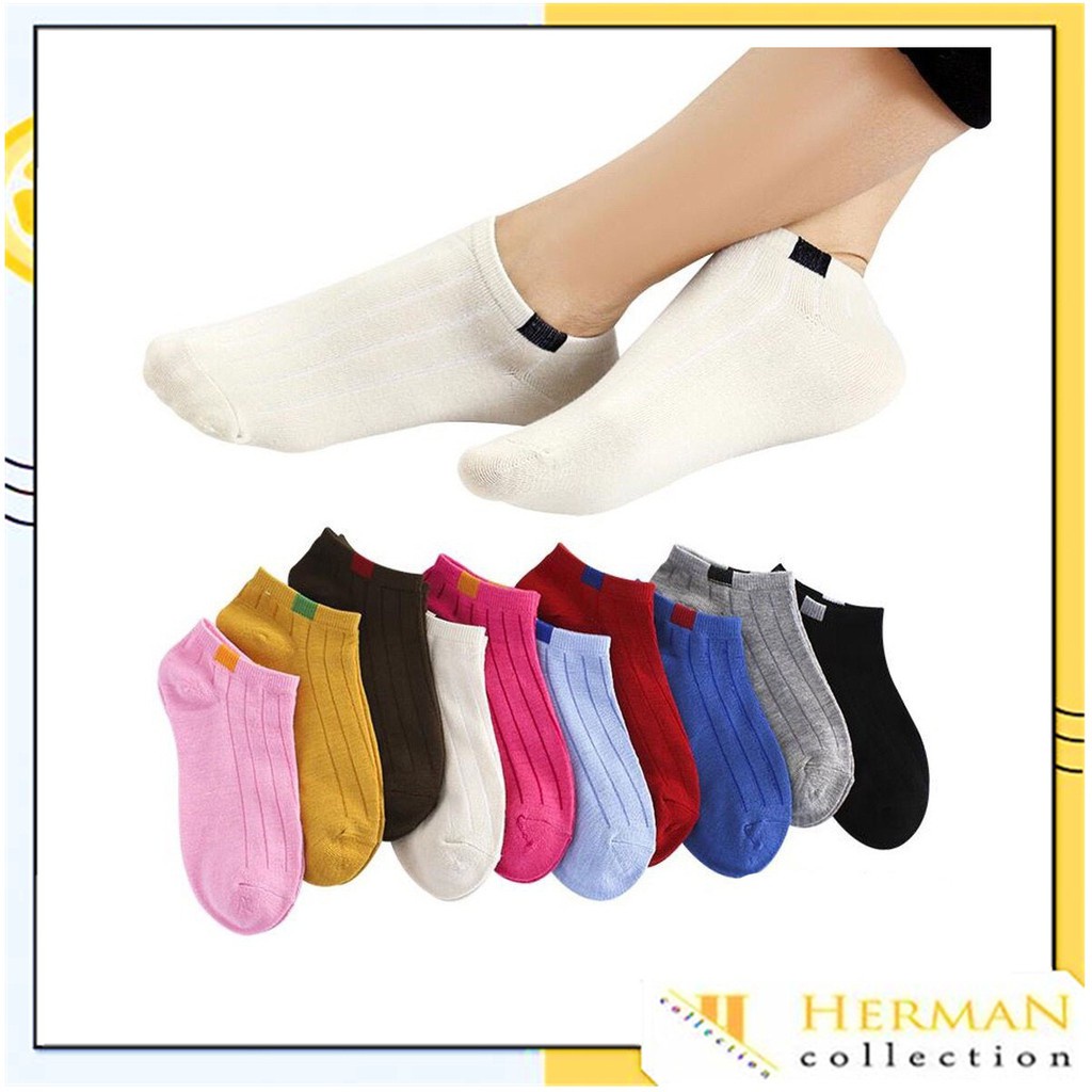 HC Kaos Kaki Polos 2 Warna Garis Pendek Semata Kaki Kaos Kaki Polos Fashion Ankle Cute Import