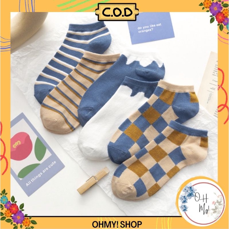 [ COD ] Kaos Kaki Wanita Pria Motif Kotak Catur Garis Polos Simple New Fashion Korean Style Socks Breathable Gaya Korea / Kaos Kaki Pendek Unkle Sock
