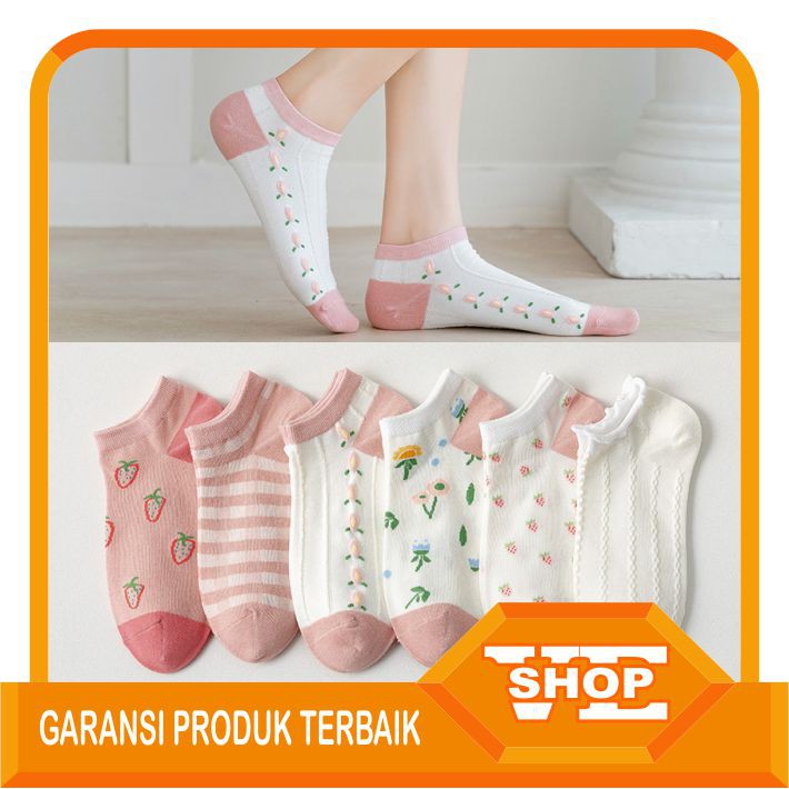 ✌️ Veshop ✌️ A057 Kaos Kaki Wanita Fashion Motif Strawberry Bunga Kaoskaki Pendek Korea Sock Import