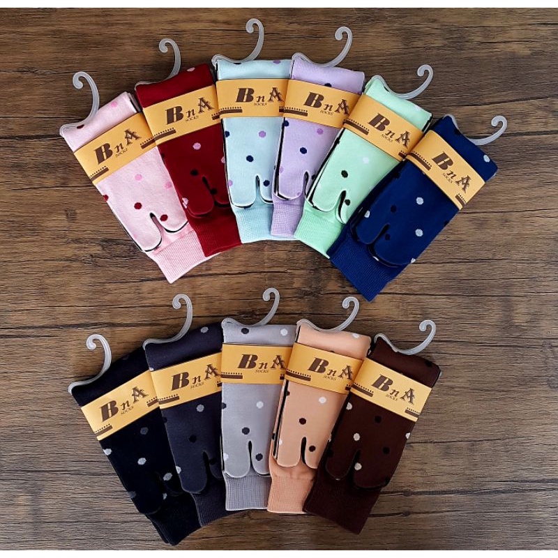 KAOS KAKI JARI JEMPOL NILON WANITA MOTIF MUSLIMAH POLKADOT DEWASA TELAPAK HITAM