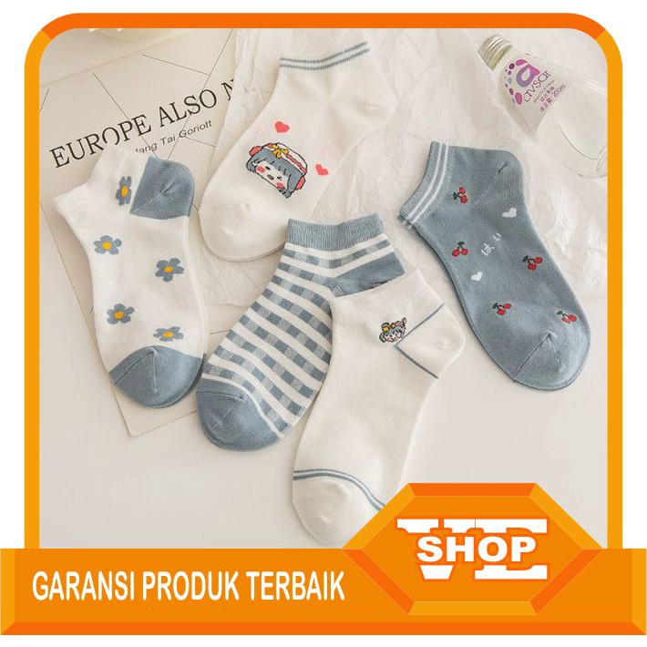 ✌️ Veshop ✌️ A185 Kaos Kaki Wanita Motif Gadis Bunga Kaoskaki Lucu Fashion Korea Women Sock Import