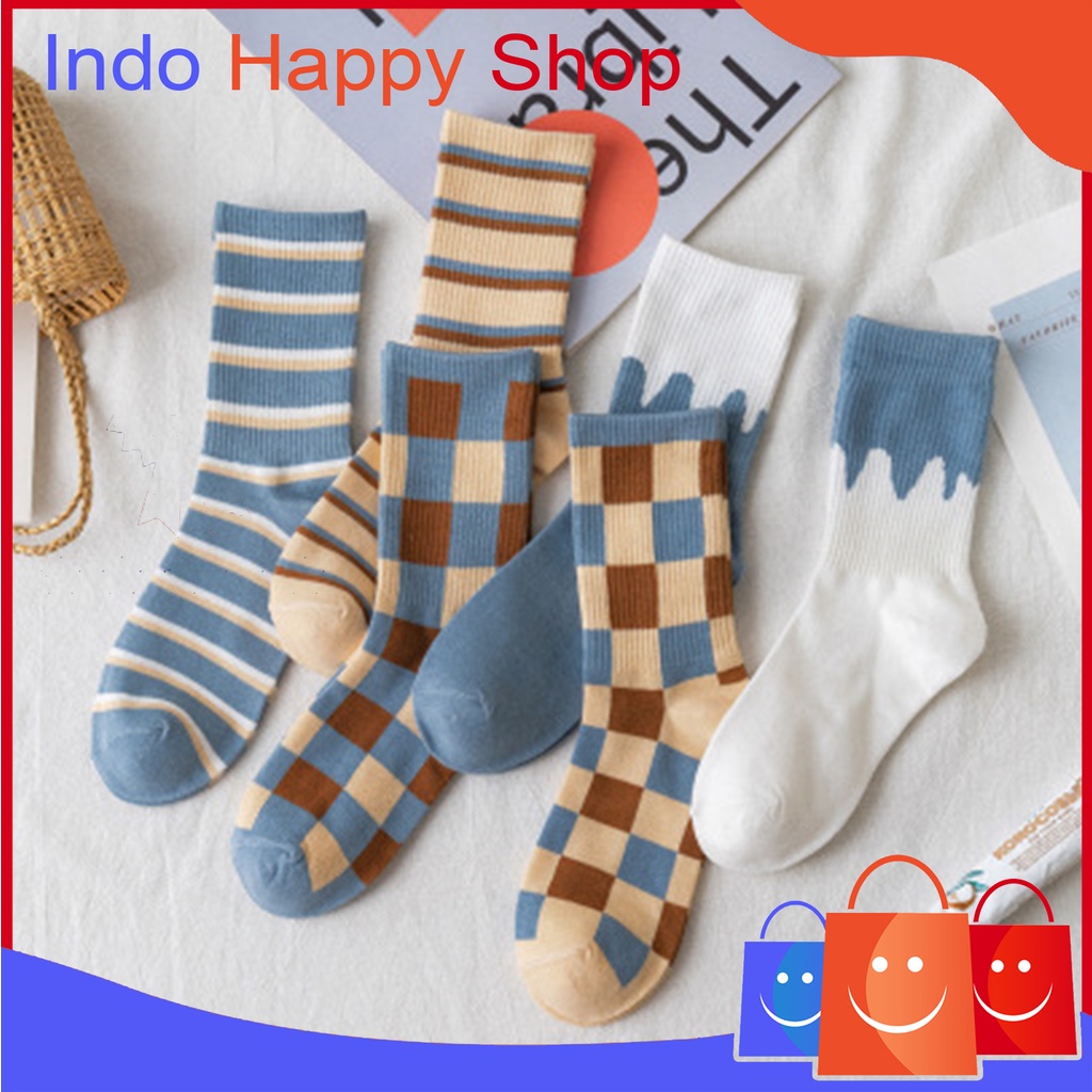 ⭐️𝐈𝐇𝐒 𝟔𝟏𝟎⭐️Kaos Kaki Pria Wanita Panjang Setinggi Betis Motif Catur New Fashion Korean Style Socks