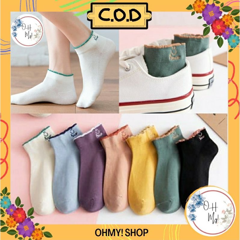 [ COD ] Kaos Kaki Wanita Semata kaki Ankle Cute Motif Smile / Kaos Kaki Lucu Import